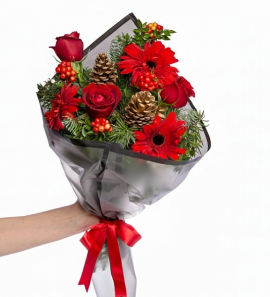 Kırmızının en güzel haliyle tanışmak istiyorsanız, Kırmızı Gül & Kırmızı Gerbera ve Kokina Buketi tam size göre! Sevdiklerinizi kırmızının büyüsü ile tanıştırmaya hazır olun! Şık tasarıma sahip, kenarı siyah çizgili mat siyah buket kağıdına sarılan kokina, kırmızı gül, kırmızı gerbera, çam yeşilliği ve kozalak sayesinde ortaya benzersiz bir görüntü çıkıyor. Kokina dokunuşu ile canlanan bu aranjman sayesinde, sevdiklerinizin yüzünde kocaman gülümsemelere neden olabilirsiniz. Yeni yılda hem kendiniz için hem de sevdiklerinize hediye etmek için Kırmızı Gül & Kırmızı Gerbera ve Kokina Buketi’ni tercih edebilirsiniz. Böylece yeni yıl ruhunu herkese yaşatabilirsiniz. Bu aranjmanı aynı zamanda Sevgililer Günü, Anneler Günü, Kadınlar Günü, doğum günü, yıl dönümü gibi özel günlerde de tercih edebilirsiniz. Yaşam alanlarını süsleyen bu özel aranjman sayesinde, sevdiklerinizin gününü güzelleştirebilirsiniz. Siparişiniz sonrasında çıkacak “Not oluşturma” sayfasında birkaç cümlelik not oluşturarak hediyenizi daha anlamlı bir hale getirmeyi unutmayın!