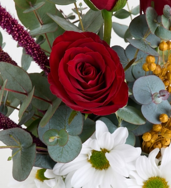 Bazı hediyeler vardır ki, zarafetiyle göz kamaştırır ve sade güzelliğiyle en derin duyguları anlatır. Kurdeleli Yeşil Vazoda 3 Kırmızı Gül & Papatyalar aranjmanı da tam olarak böyle bir hediye… Her detayında özen barındıran bu özel tasarım, romantizmin klasik sembolü olan kırmızı güller ile neşenin ve saflığın habercisi papatyaları aynı kompozisyonda buluşturuyor. Sevdiklerinize “Sen benim için özelsin” demenin en doğal ve en içten yollarından biri… Yeşil çizgili özel polimer vazosu ile bulunduğu her ortama zarif bir dokunuş katarken, kırmızı ve koyu yeşil kurdele detayları şıklığı tamamlıyor. İçeriğinde yer alan 3 adet ithal kırmızı gül, aşkınızın tutkulu ama bir o kadar da sade halini temsil ederken, papatyalar ilişkiye kattığınız içtenlik ve huzuru simgeliyor. Aranjmanda kullanılan okaliptus, setteria mor ve sarı luna gibi detaylar ise doğadan ilham alınarak tasarlanmış bir tablo gibi buketinize büyüleyici bir hava katıyor. Kırmızı craspedia dokunuşları ise enerjiyi ve mutluluğu sembolize ediyor. Bu özel tasarımı; doğum günleri, yıldönümleri, teşekkür etmek istediğiniz anlar ya da sadece içinizden geldiği için sevdiklerinize armağan edebilirsiniz. Siparişiniz sonrasında çıkacak “Not oluşturma” sayfasında birkaç cümlelik not oluşturarak hediyenizi daha anlamlı bir hale getirmeyi unutmayın.