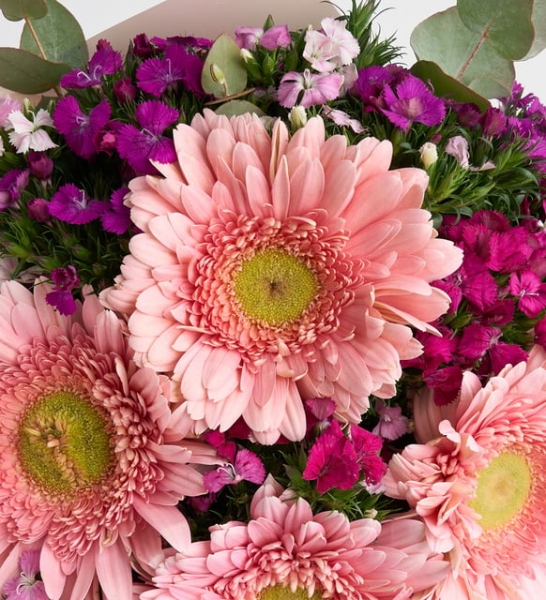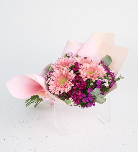 Ürün İsmi: Lila Bukette Pembe Gerberalar ve Hüsnüyusuflar