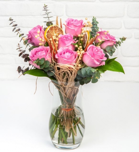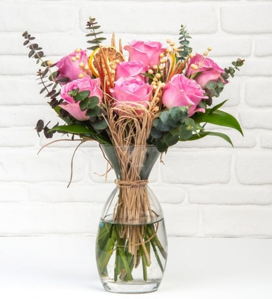 Sevginizi veya aşkınızı anlatmanın birçok farklı yolu olsa da en güzel yolu çiçeklerden geçer. Çünkü çiçekler, kelimelerin çok ötesinde duyguları anlatmakta birer ustadır. Pembe güllerin masumiyeti ve zarafeti, özel anlarınıza duygu dolu bir dokunuş katmak için mükemmel bir seçim olacak… 7 adet pembe gülün şıklığını tamamlayan okaliptus, ruskos yeşillik ve doğal dokunuşlar, aşkın ve samimiyetin en özel temsilcilerinden biri olarak sevdiğinizi bekliyor. Paşabahçe zarif kristal cam silindir vazoda sunulan bu eşsiz aranjman, bulunduğu her ortama sofistike bir hava katacak. Solucan otu ve sarı luna gibi özel bitkilerle süslenen çiçek düzenlemesi, sadece görsel bir şölen sunmakla kalmaz, aynı zamanda doğallığın ve zarafetin mükemmel birleşimini yansıtır. Özel günlerde veya içinizden gelen herhangi bir günde sevginizi hissetirmek için pembe güllerin büyüsünü tercih edebilirsiniz. Siparişiniz sonrasında çıkacak “Not oluşturma” sayfasında birkaç cümlelik not oluşturarak hediyenizi daha anlamlı bir hale getirmeyi unutmayın.