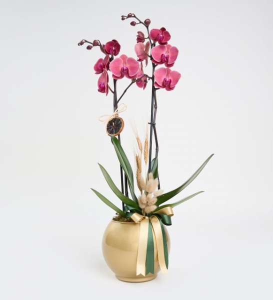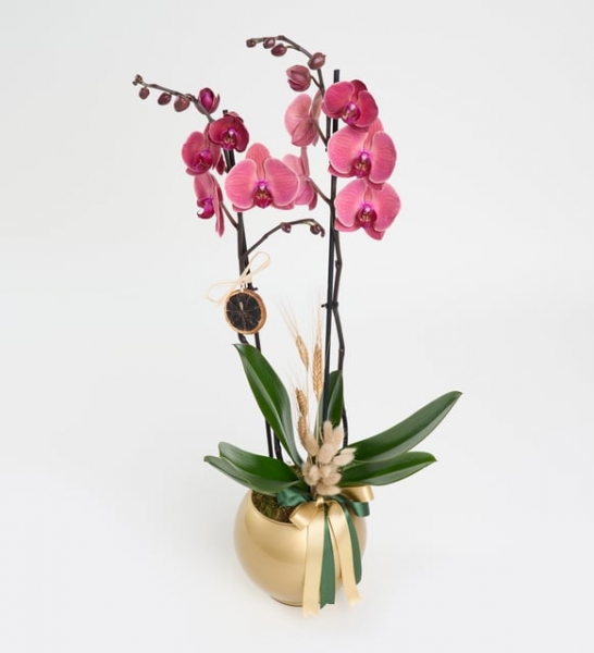 Ürün İsmi: Senin İçin Altın Saksıda Kırmızı Çiftli Orkide